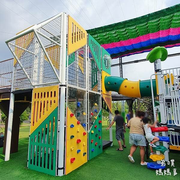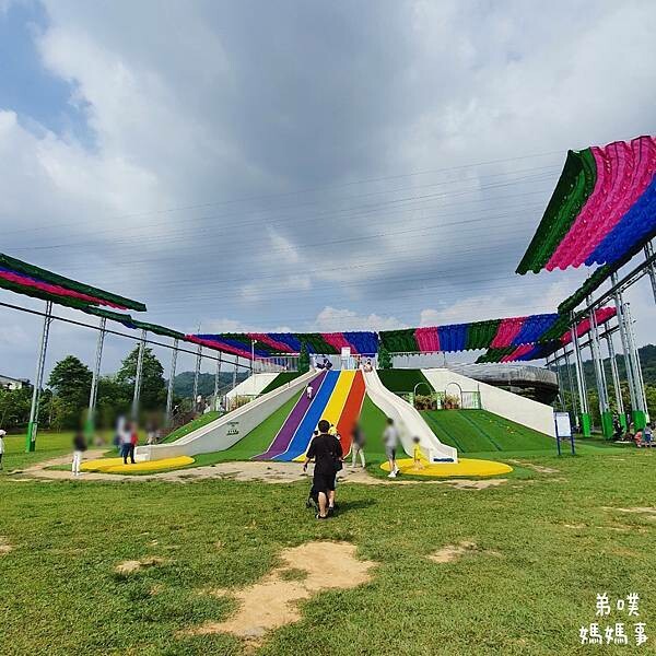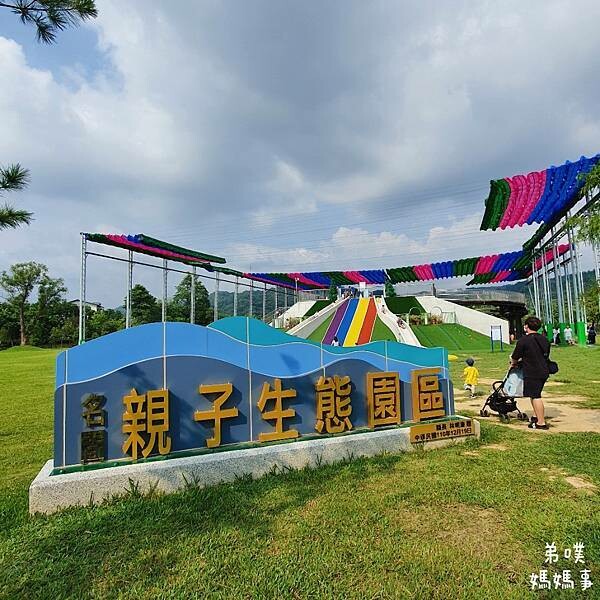 南投名間親子生態公園,弟噗媽大推!! 大推原因有遮陽!! 這在炎熱夏天來說是非常重要的事情!!占地2.6公頃是苗圃改建,一進到公園最吸引人的就是高5公尺巨無霸彩虹磨石溜滑梯,後方更有三大座遊樂設施,真的不愧是南投首座親子共融特色公園,真是大氣又好玩!!