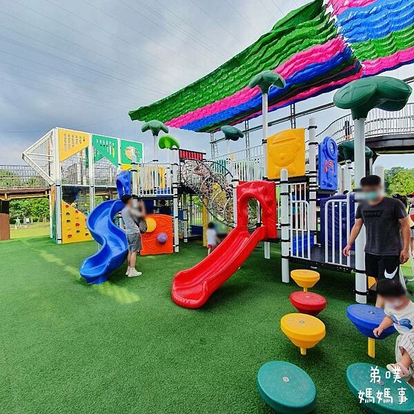 走上景觀步道就能看到這超棒的遊樂設施!! 左邊就是家長休息區,也能自備野餐墊,想要人工還是天然草皮任君選擇!
