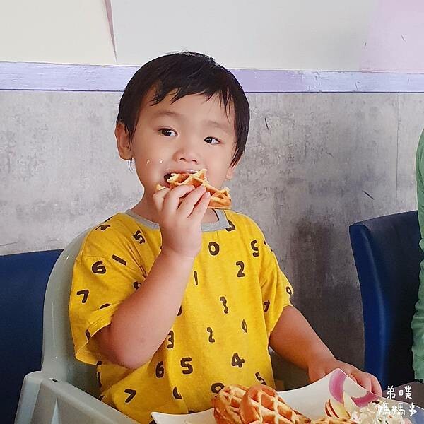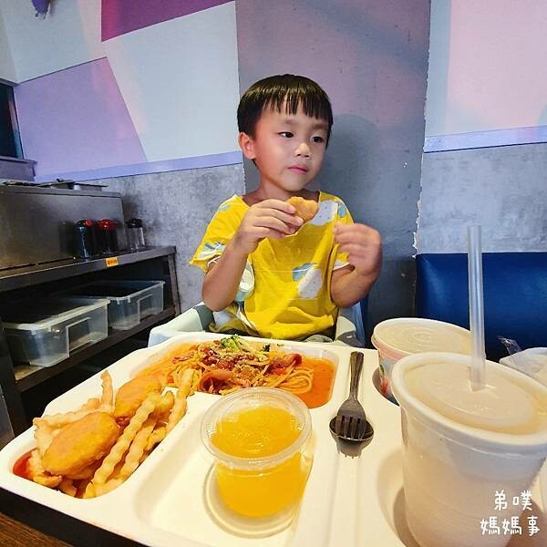 拍了些時間,餐點也涼了,幸好是室內位置,比較不會有蒼蠅飛來飛去。弟噗這套是兒童餐,弟噗也是全部吃光光