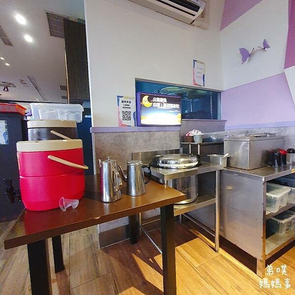 現場也有免費茶水、火鍋配料可以自取,有杯飲料有點太甜,就一直裝水稀釋,連喝好幾杯水也不錯~