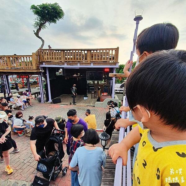 雖然剛剛點餐排隊人很多,但這裡的位置也相對超級無敵多!! 完全不用擔心沒位置,男孩們都怕熱怕蚊子,所以直接選室內吹冷氣。劃好位後,因為遇到那顆紅通通夕陽,就先到橋邊來拍拍照