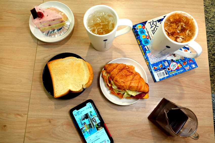 除了咖啡、果汁、茶飲,還有蛋糕、吐司、帕尼尼熱壓吐司等各種輕食,