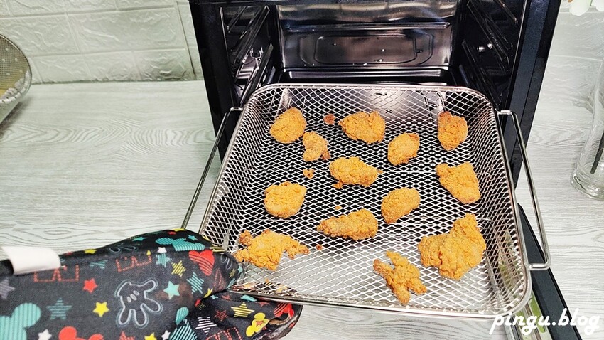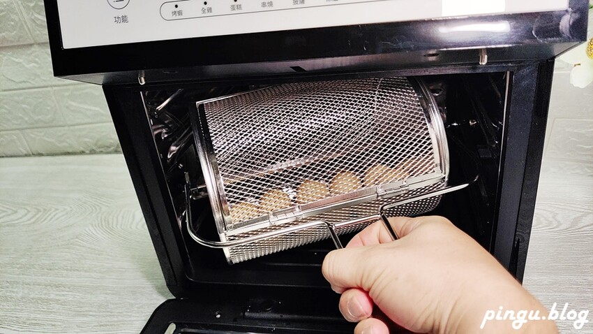 轉籠拿來讓原本就有油的炸物加熱最適合了,像是小朋友愛吃的薯條、雞塊、地瓜球、起司球、鹹酥雞炸物等,平常用氣炸鍋可能會有一面黏住在底部,使用轉籠就能360度旋轉加熱,也讓炸物更加金黃酥脆~