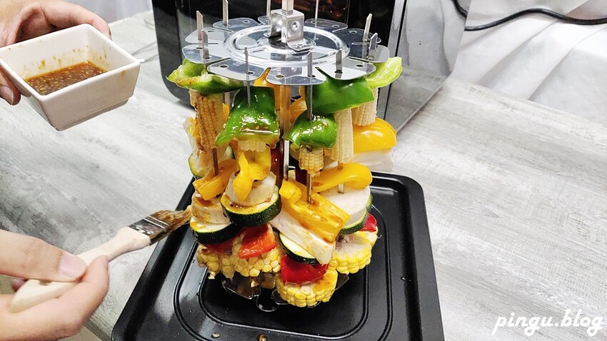 串燒能轉烤,360度的加熱讓食材更能均勻受熱,過程中也可以開門塗抹烤肉醬,讓食材充分的吸入醬汁增添風味~