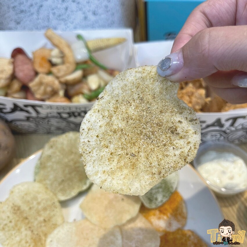 喜歡吃重口味或清爽口感的朋友,店家也提供塔塔醬、巧克力醬等不同的搭配,讓現炸洋芋片有更多創意風味,大家就跟著小米一起去看看吧,GO