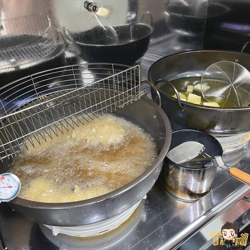 聽老闆說要炸出又酥又脆的臭豆腐其實是有秘訣的,要以高低油溫,分兩個階段來炸