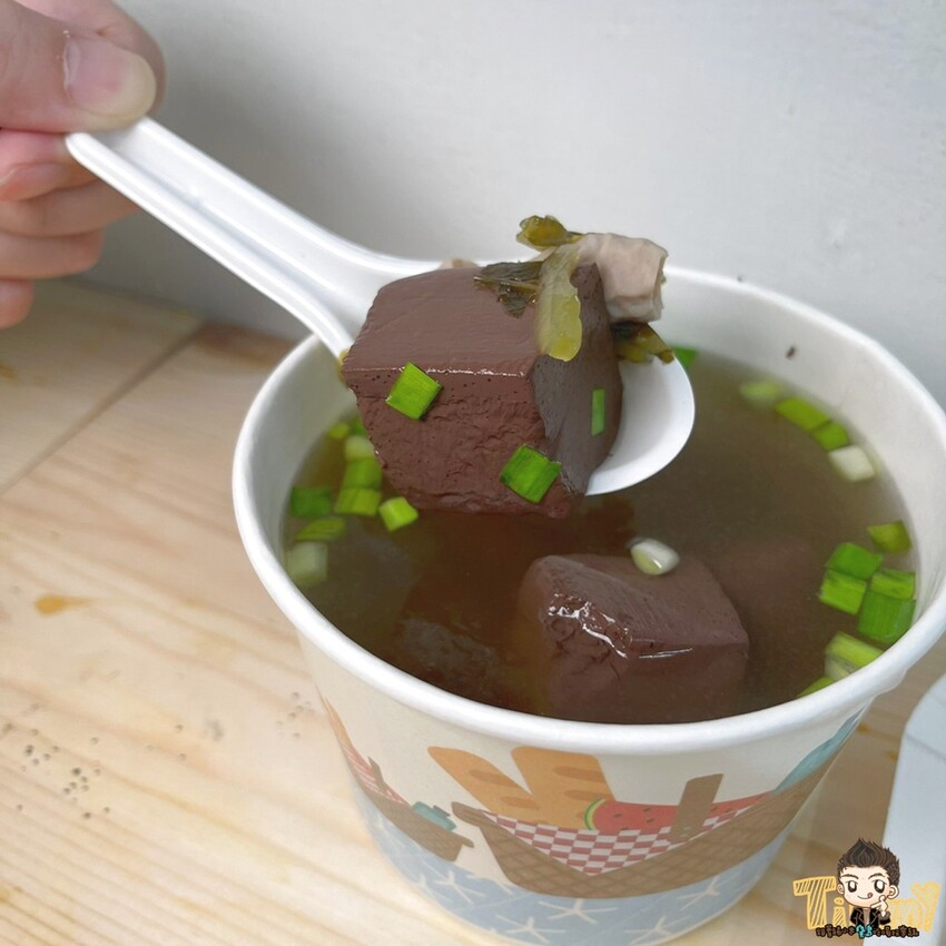 大塊又軟嫩的豬血,吸附了鹹香帶點酸菜香的湯頭後,口感更濕潤、好吃了
