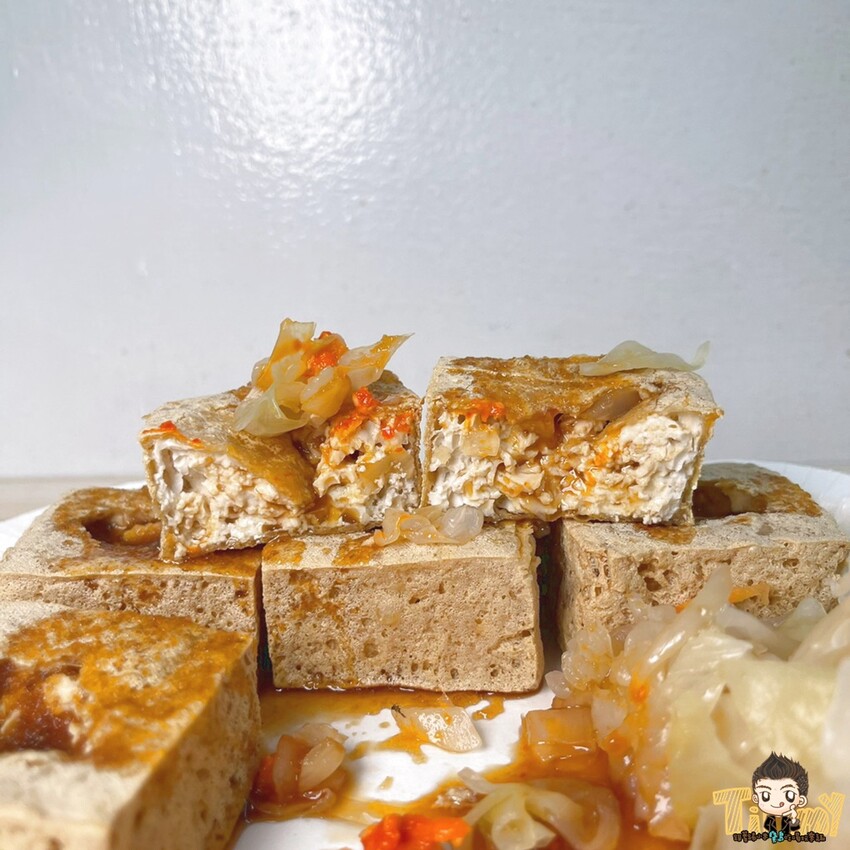 首先將臭豆腐以低溫炸熟,再以高溫將外皮炸酥,還能保留內裡有汁的口感