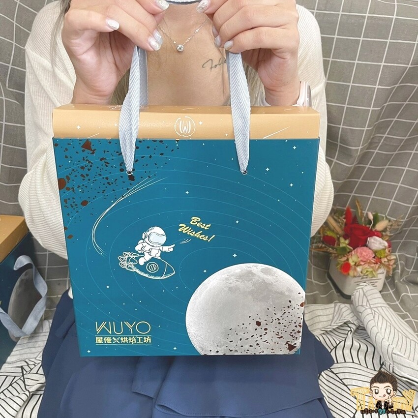 禮盒設計很有巧思,除了印有皎潔明亮的滿月之外,太空人乘坐火箭的圖樣,彷彿要帶著我們一起去探險月球