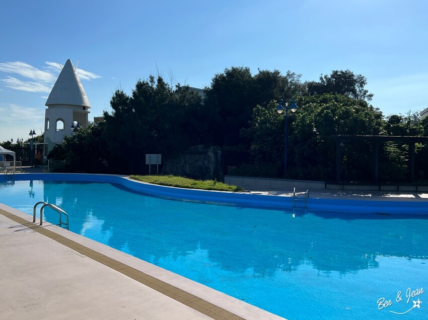 這裏配有救生員,但記得要穿著泳裝及泳帽哦,想不到可以在海邊的游泳池游泳,一旁還有大風車呢,真特別