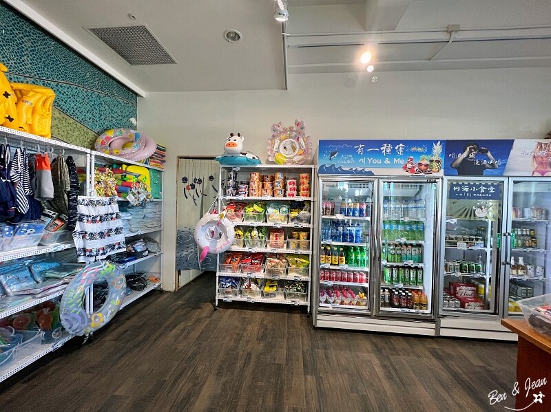 櫃檯旁還有小商店,零食泡麵、飲料、玩具也有一些游泳用品~~我們還臨時買了飲料、泳圈,非常方便