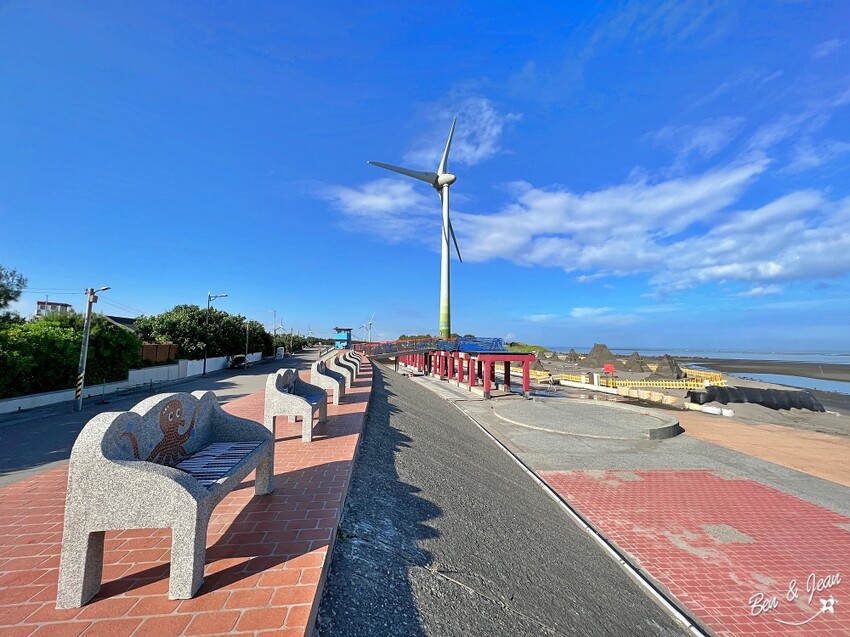 這裏的海岸線遼闊,一望無際,可以坐在沙灘邊的椅子或者石階欣賞黃昏的美或是一旁的大風車