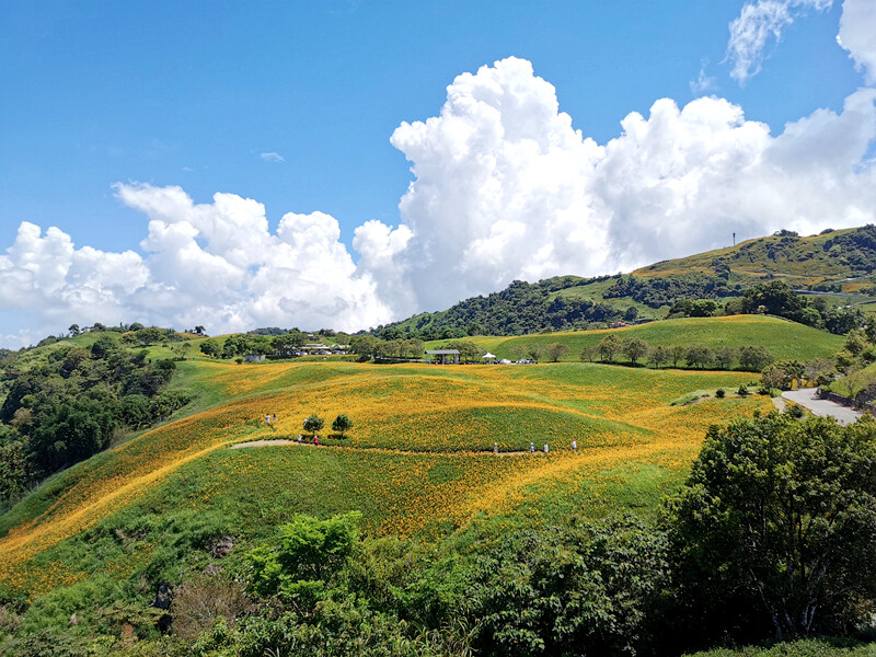 六十石山是台灣期間限定的花海美景,也是我們覺得是台灣必遊的景色之一。獨特的山勢像極了瑞士的地形,景色非常優美。加上金黃色的金針花海在藍天白雲綠野之中,更顯的迷人。絕對不輸美瑛的花海美景。這裏特別是在午後3-5點,會有獨特的透過雲層灑落的耶穌光,更早是攝影人士的心頭好。晚上來拍個銀河景致也很棒。這裏真的很美,手機隨手一照,就是這樣的美景,人人都可以是攝影大師!!