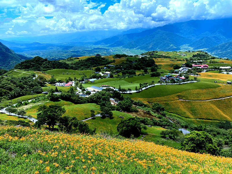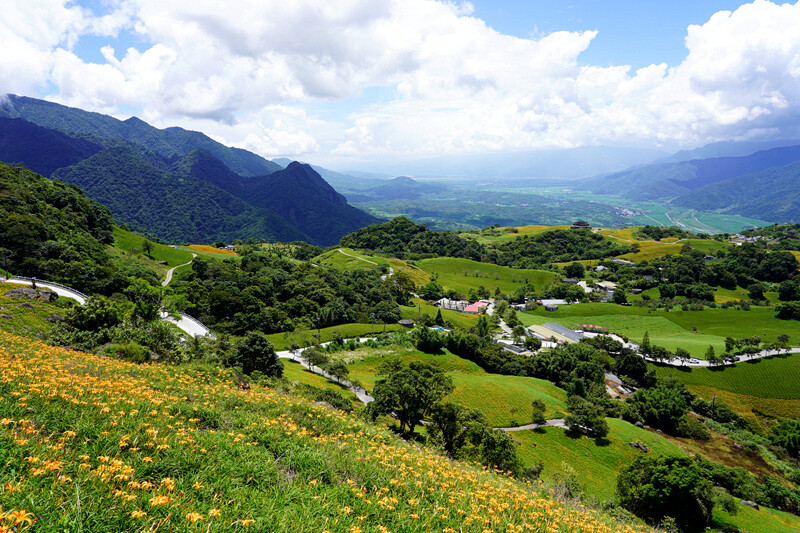 到了小瑞士一定要好好的大拍特拍!! 因為山巒起伏真的超像瑞士的風光,真的太美了,滿山頭的金針花。搭配花東縱谷的美景,令人心曠神怡!! 不來保證會後悔