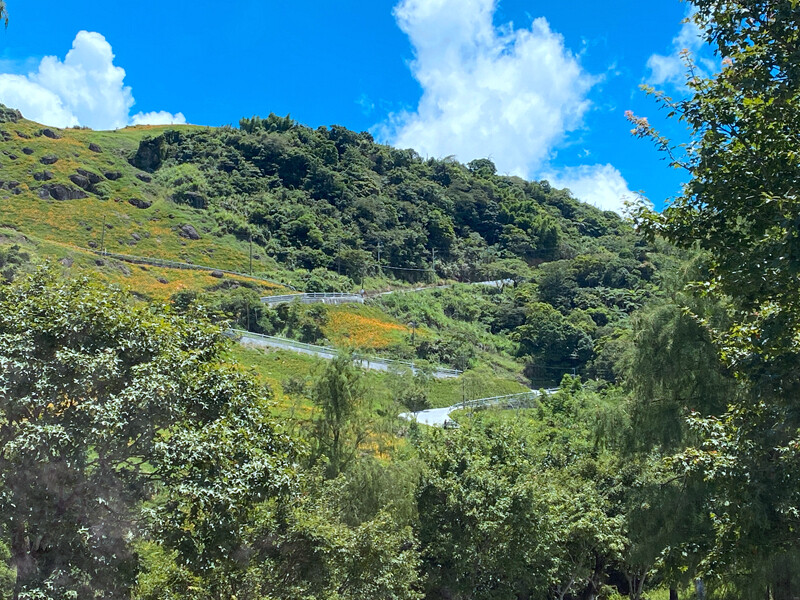 上山時先經過一段蜿蜒無比的車道,大約只有一台車多一點的空間可以通過,兩台小車勉強可以會車。還有花季時間會有管制,所以上車的車不會和下山的車交會( 赤柯山的也是,但太麻里金針山的雙向車會交會),上車約莫開20-30分(一路暢行無阻的情況) ,假日人多,所以交通時間會更久