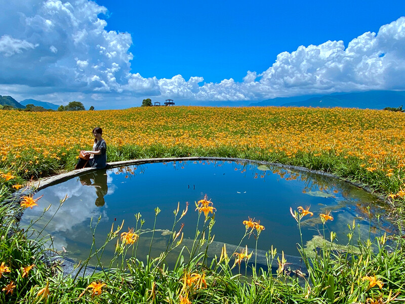 烏魚山莊最有名的就是一旁的水池倒影,水面上的光影變化非常迷人。這裏也適合休息。這裡可以免費停車這個人可以拍絕美金針花的景點千萬不要放過。地址:花蓮縣富里鄉雲閩19號。