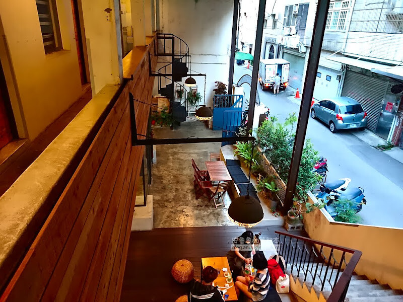 從二樓走廊往下看,不同視野有不一樣的感受,設置鐵旋梯很歐風,超適合網美拍照打卡