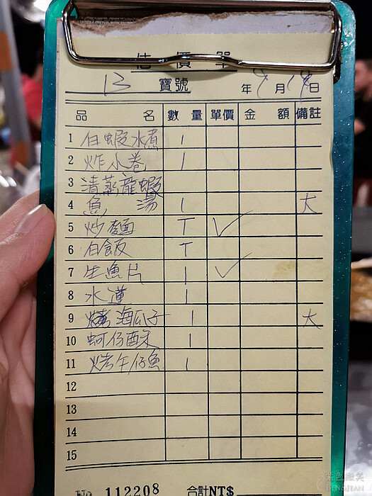 有別於一般的海鮮餐廳!! 這裏的菜單清楚的寫在黑板上,然後要吃什麼自行寫在點菜單上再交給店家人員