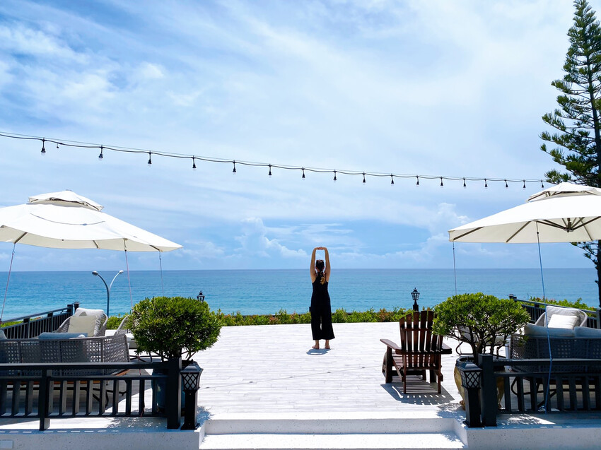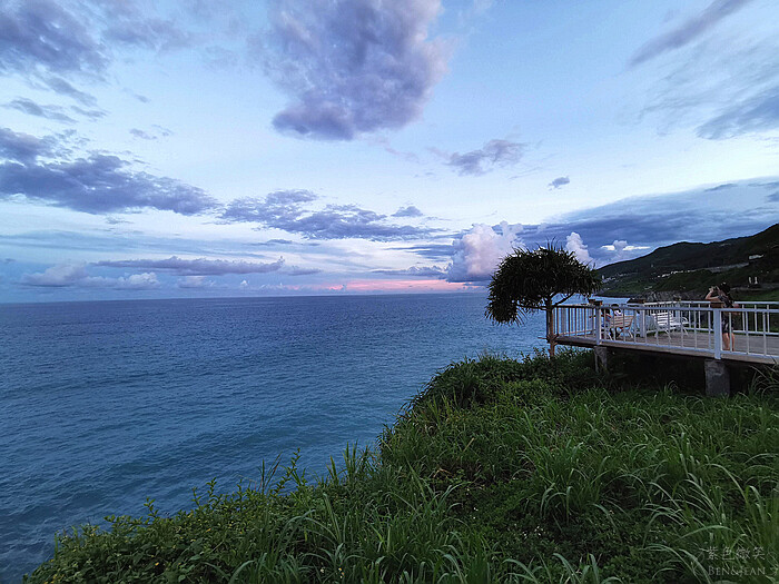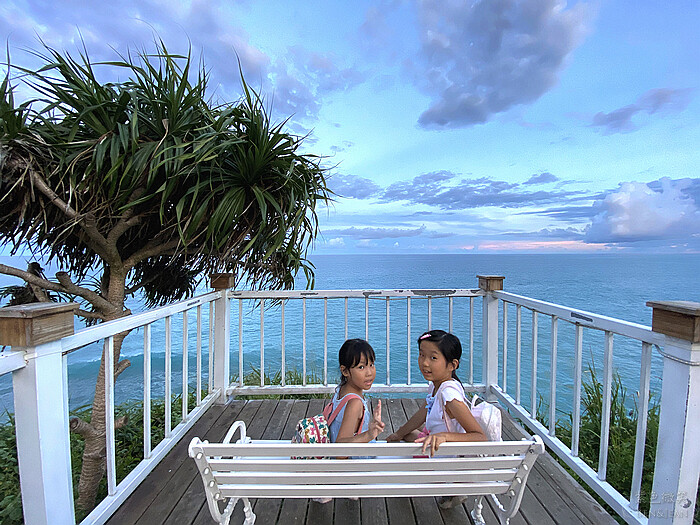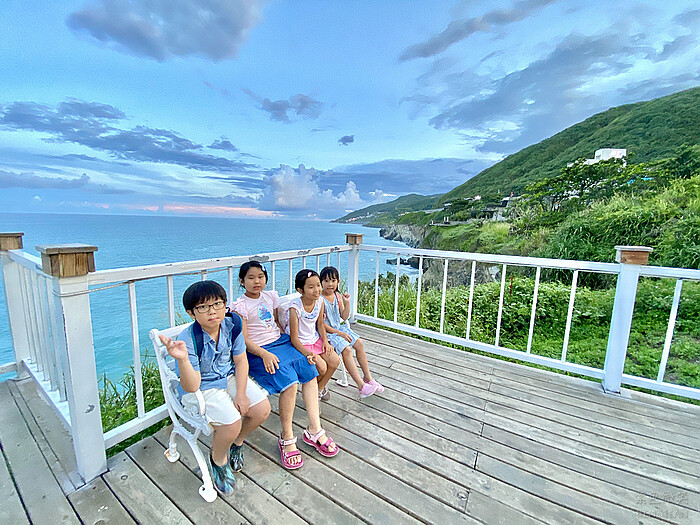 坐在觀景台的椅子上,欣賞海天一色的自然美景,欣賞花蓮的海景之美