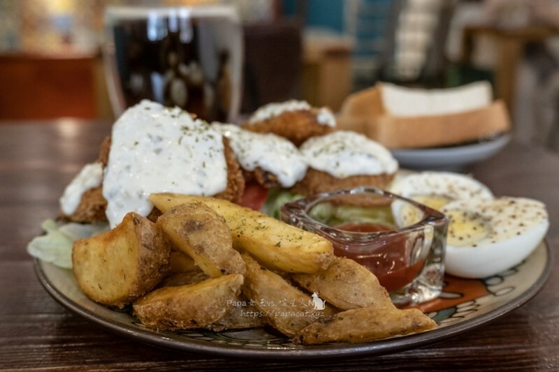 我點的是塔塔魚套餐,自製塔塔醬,魚應該是多利魚