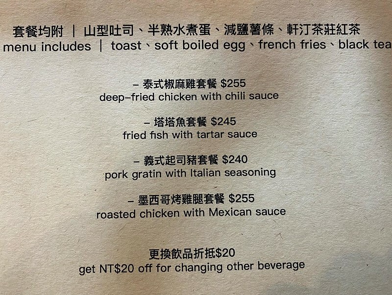 套餐都有 山形吐司 水煮蛋 薯條 紅茶 ,本打算再點布丁+記憶吐司 想想我這種小胃 能吃光餐盤裡就要偷笑了…