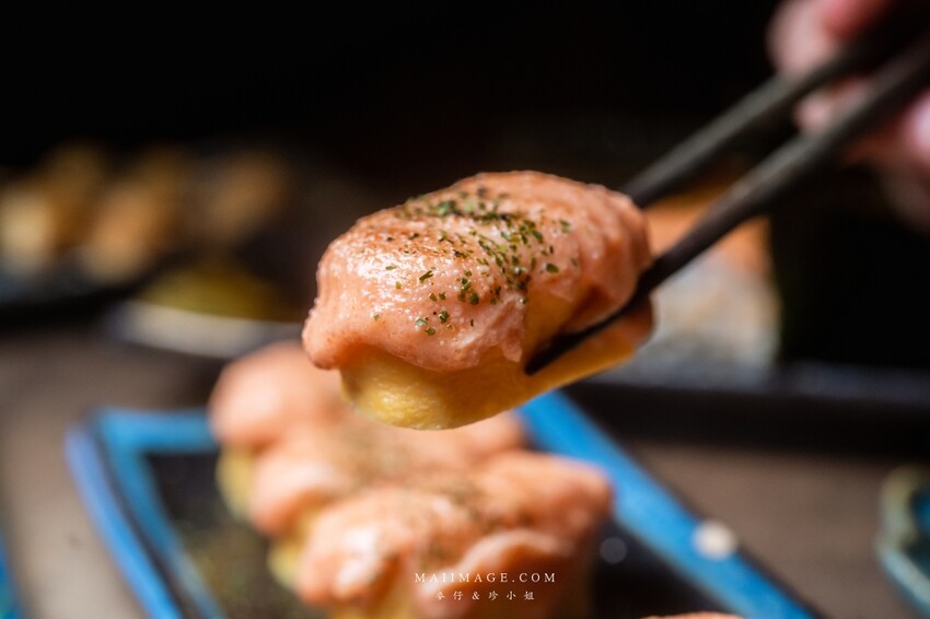 ▲來居酒屋通常多喝幾杯我還會再加點這個明太子飯糰止餓XDD。同樣是大塊頭我跟珍小姐兩個人分食剛剛好。