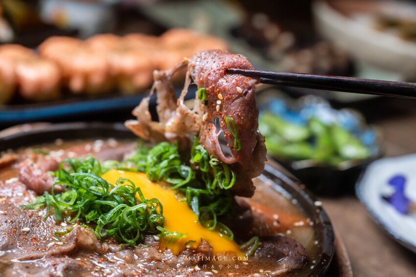 ▲牛肉的熟度剛剛好,還帶著嫩口的口感,搭配蛋液蔥花一起品嚐味道層次更多元。
