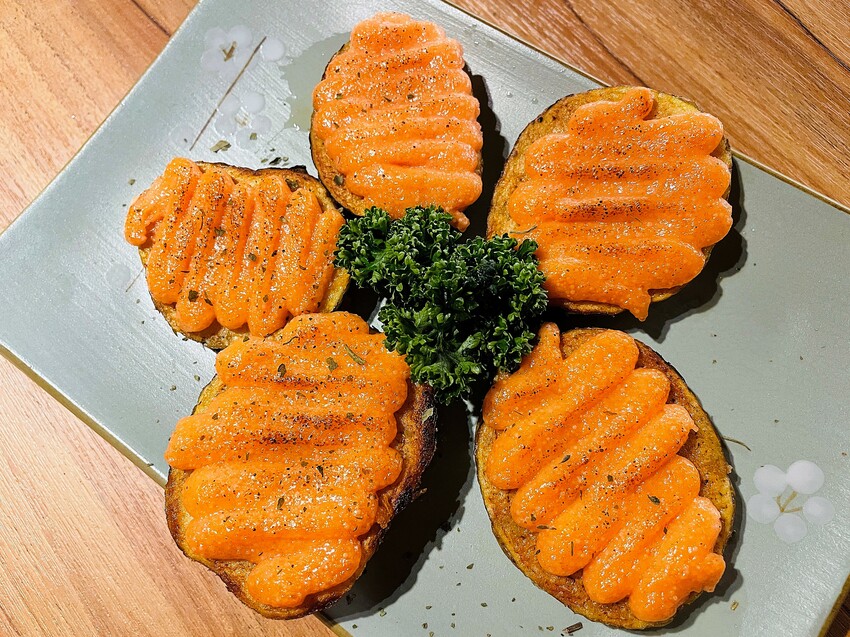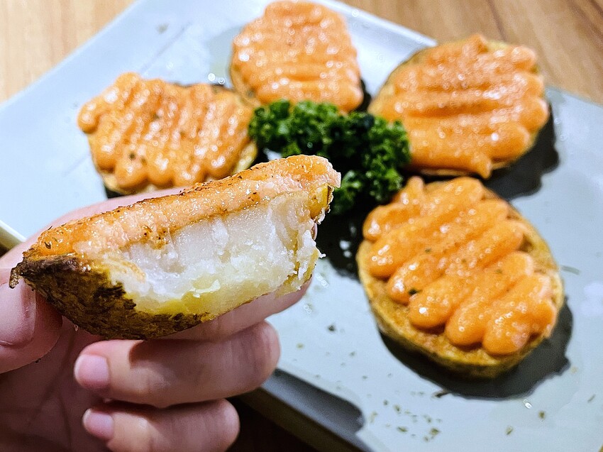 明太子馬鈴薯帶皮馬鈴薯口感鬆鬆軟軟~覆蓋滿滿明太子醬鹹甜滋味好唰嘴明太子控必點!