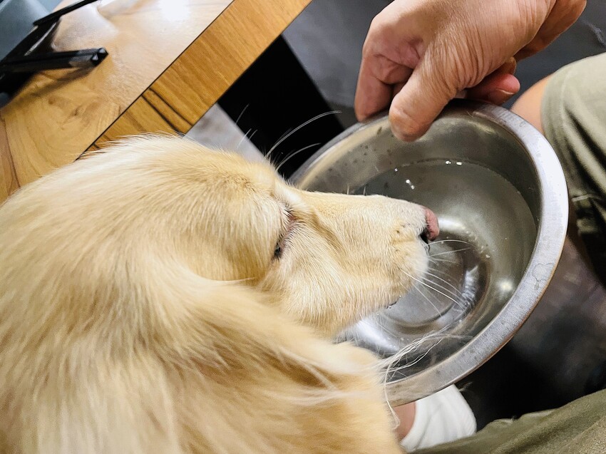 小臘腸咪咪奔波一天口渴了 這裡貼心提供寵物飲水~