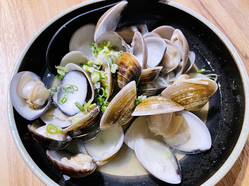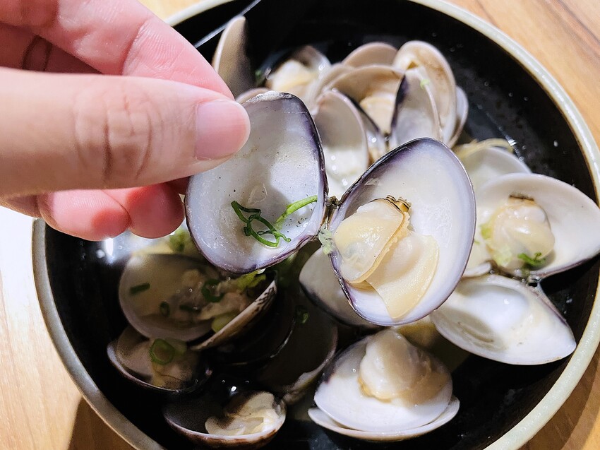 酒蒸蛤蠣蛤蠣肉粒粒飽滿沙吐的乾乾淨淨加入細薑絲去腥~