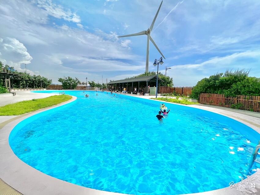 台中景點》大安濱海樂園、大安濱海樂園游泳池~踏浪抓蟹、夕陽觀賞、衝浪,湛藍海水及海岸風車轉動,還有大安沙雕音樂季~真的非常有趣!