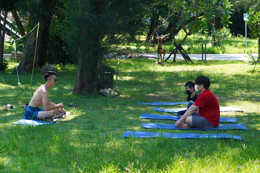 隔天一早剛好還有戶外瑜珈的活動呢! 在大草地上更有一番樂趣呢