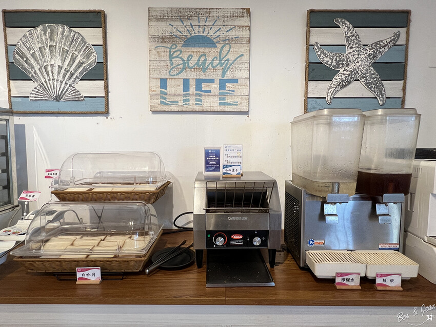 早餐一樣在遊客中心二樓享用,這裏的清晨少了遊客的喧嘩 ,更適合在戶外座位享受美味的早餐。享受海風溫柔的相伴