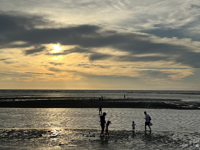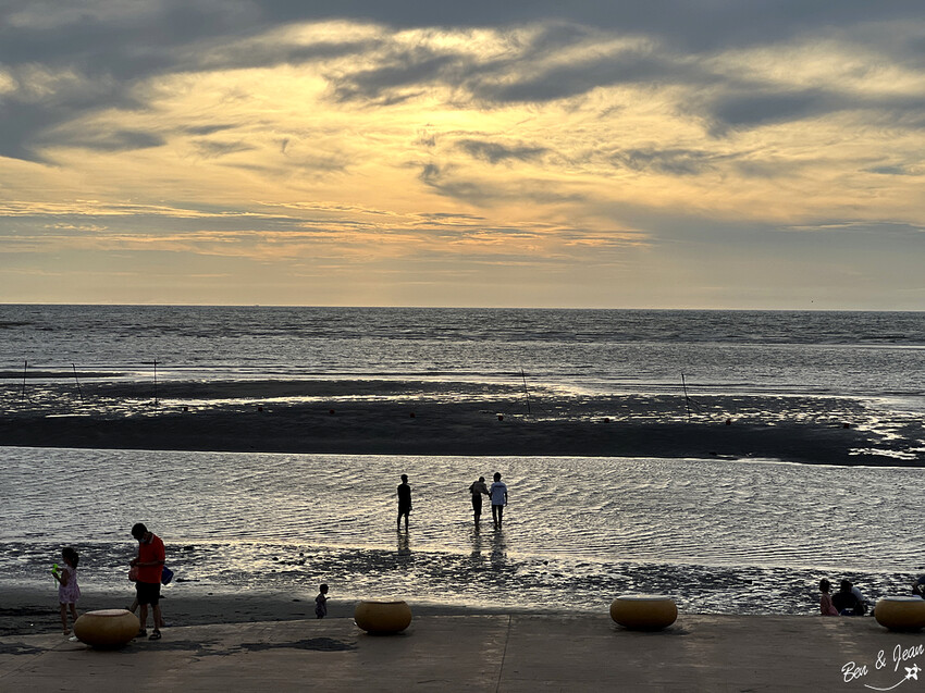 這時間剛好退潮,好多人在沙灘戲水,不用到高美溼地人擠人,這裏也有同樣的樂趣