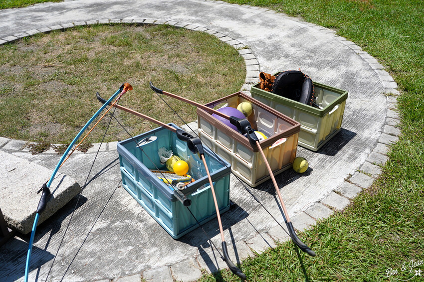 這裏備有足球、棒球九宮格、射箭、羽球、泡泡足球、搖搖馬等小設施可以使用