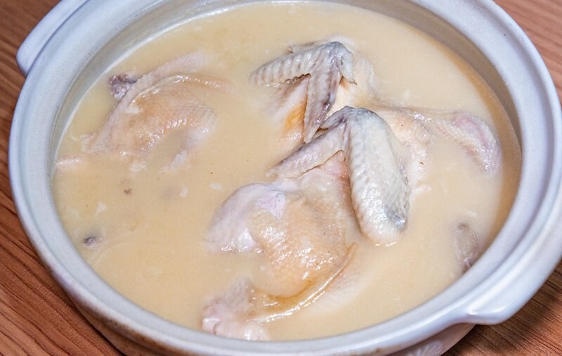 法租界十年一湯。這雞湯說到我不想說了,它絕對是目前為止台北,甚至整個台灣我最愛的一碗,沒有加豬腳、火腿、蔬菜,只加了一點洲南鹽廠海鹽調味,純粹又好喝。這天,這一鍋特別有水準,感覺又進化了,喝完唇舌同樣沾滿意猶未盡的膠質。