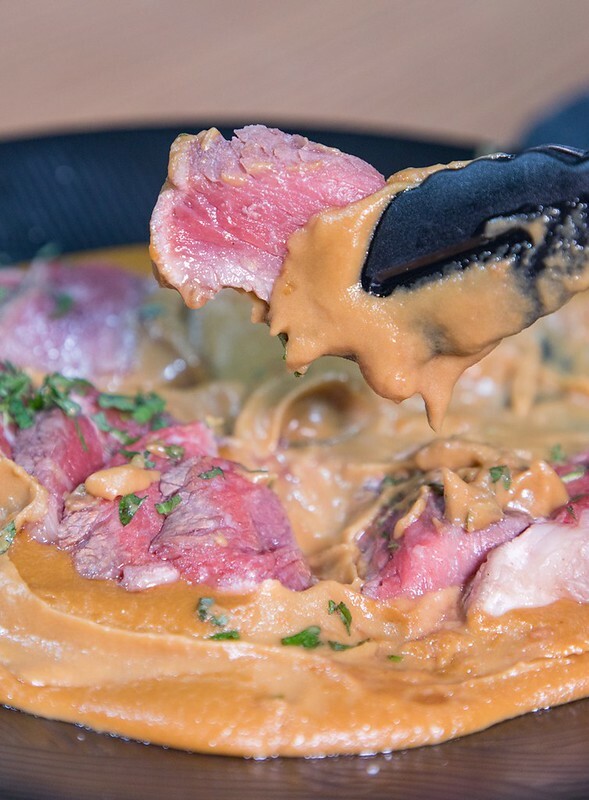 洋芋泥炭烤美國PRIME沙朗心,這道是除了麻婆豆腐烤布蕾我第二愛的,但可能更精確的說法是我愛這盤的洋芋泥,那奶油焦糖、紹興老酒香、芋泥甜三位一體,徹底擊敗我的味蕾,那怕那時我早飽得七七八八,還不斷的去挖那洋芋,更無視於我最愛的食材牛排...甚至可以說這一盤洋芋泥,即便沒了炭烤美國PRIME沙朗心,我都會愛得亂七八糟。當然,看倌光看這沙朗心的模樣就明白沒道理不好吃,只是沾上這神奇的洋芋泥,反倒不曉得誰是主角。但,誰在乎呢,好戲便行。