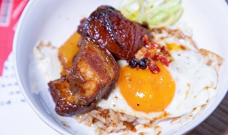 孜然年糕五花 / 星願米 / 金盞花雞蛋,用法租界引以為傲的雞湯煨煮的五花肉飯,慢慢成了店裡的招牌之一,配上蛋黃綿甜的金盞花雞蛋吃來更顯化口,這次又多添了年糕這位新朋友。飯用了星願米,五花肉的作法也略作改變,多添了用烘烤再研磨的孜然、生抽、老抽和一點竹葉青,油甜肥嫩不在話下多了孜然的前味及後味的酒香,感覺好像比較不那麼的鹹油膩口,能吃辣的朋友,建議加點個人很愛的法租界辣椒醬。
