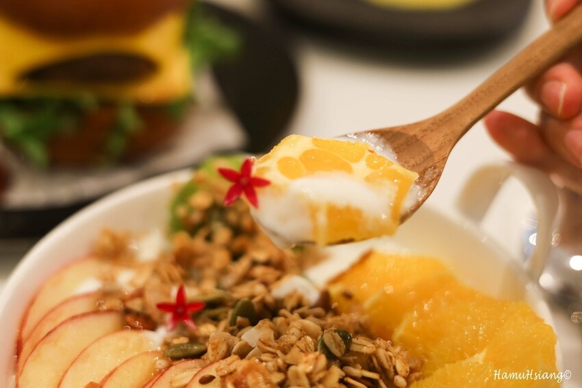 蜂蜜也很濃郁,是貨真價實蜂蜜,有種花香配優格的感覺,(還有漂亮的食用花很加分)風味剛剛好,是一份可以有點小飽的分量唷!