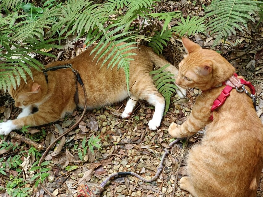今天一看天氣轉好!馬上拎著兩貓出門去!