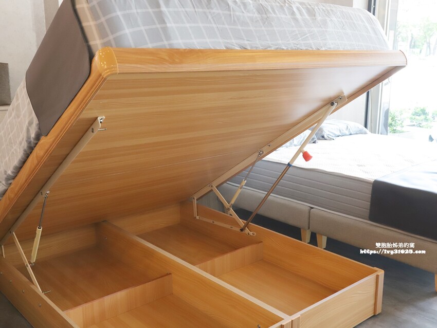 可以搬動拉高的收納床墊對於家裡堆積很多物品更是一大福音,但是家裡有小孩更需要有保險栓扣住,因為一個不小心,很容易掉下來壓傷孩子或是困住,所以好享宅家床墊也貼心地替客戶想到。