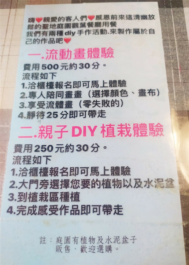 此處的DIY課程主要分成二種:流動畫體驗$500和親子DIY植栽$250