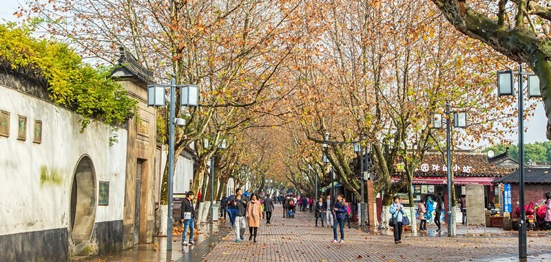在日本、韓國秋天看得自然是楓葉及銀杏,可在中國我特別迷醉於梧桐,尤其是在杭州與蘇州、甚至是上海等江南地區,蘇州博物館所處的東北街一帶便有「寂寞梧桐深院」的氛圍。