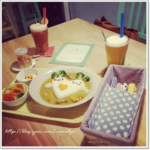 另外是飲品們:鳳梨百香果優格(左)、抹茶牛奶(右)