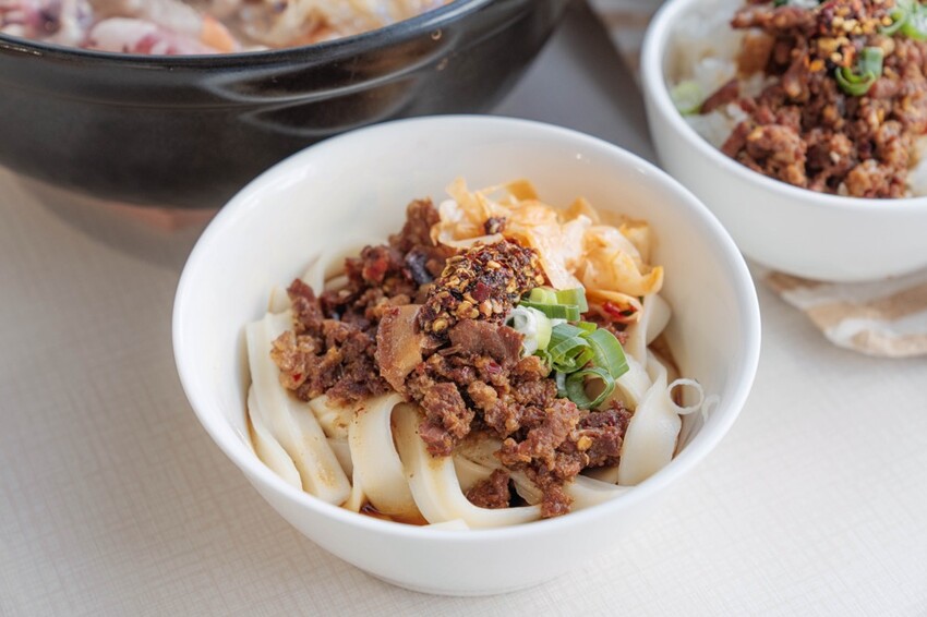 麻辣滷肉飯的滷汁香氣十足,滷肉的肥瘦適中,吸收了滿滿的精華湯汁後超級下飯,最後淋上特調的手工花椒油真的太下飯啦!!