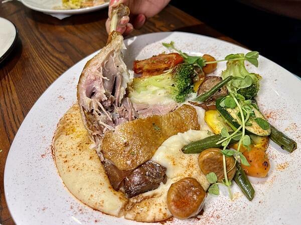 【蒜味油封鴨腿搭配馬鈴薯季節食蔬佐主廚特製醬汁】$780