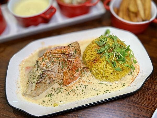 【白醬蘑菇啤酒燉雞佐馬鈴薯附黃飯】$350