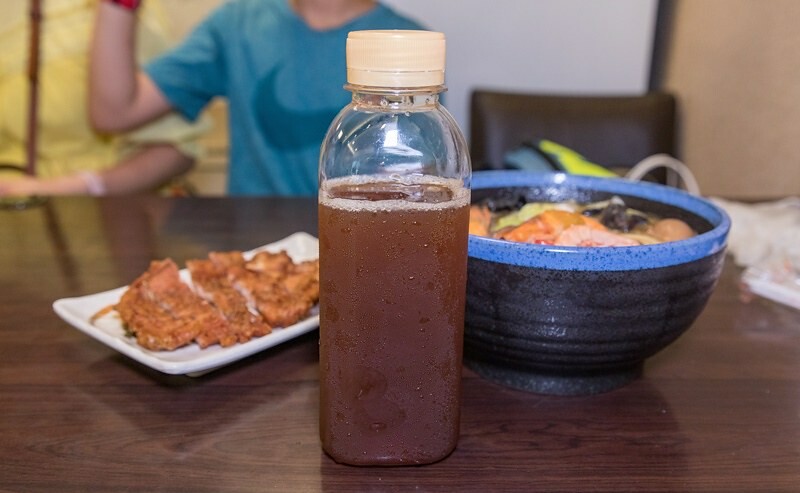 什錦麵加炸排骨是許多熟客、饕客的最後,每到夏天還會多了一味「酸酸湯」,於是阿鴻哥也沒經我同意就幫我叫了一瓶(笑)。話說這酸梅湯真是我喝過店裡瓶裝最美味的,尤其是那酸甜之餘的回酸及淡淡像中藥氣息的甘甜,回竄後殘留在嘴裡的酸意,真是好喝得亂七八糟。