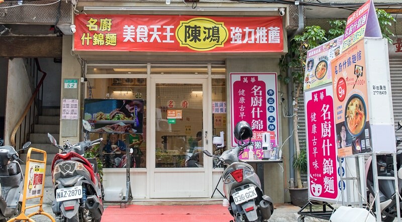 名廚什錦麵館位於萬華火車站對面,著名的阿默蛋糕和冬天一位難求的「霸味薑母鴨」後方,一條叫做我永遠記不住名字的興寧街裡。