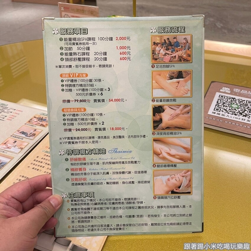 這裡提供的服務主要有泰式皇家養生課程、SPA課程、曲線雕塑課程等。
